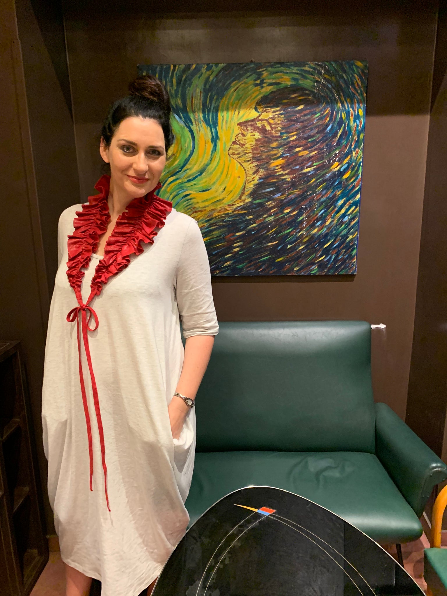 Unique and interesting, the Dramatic Ruffle can be worn as a Collar, Necklace, Halter Neck, Shrug, Belt and Victorian Collar