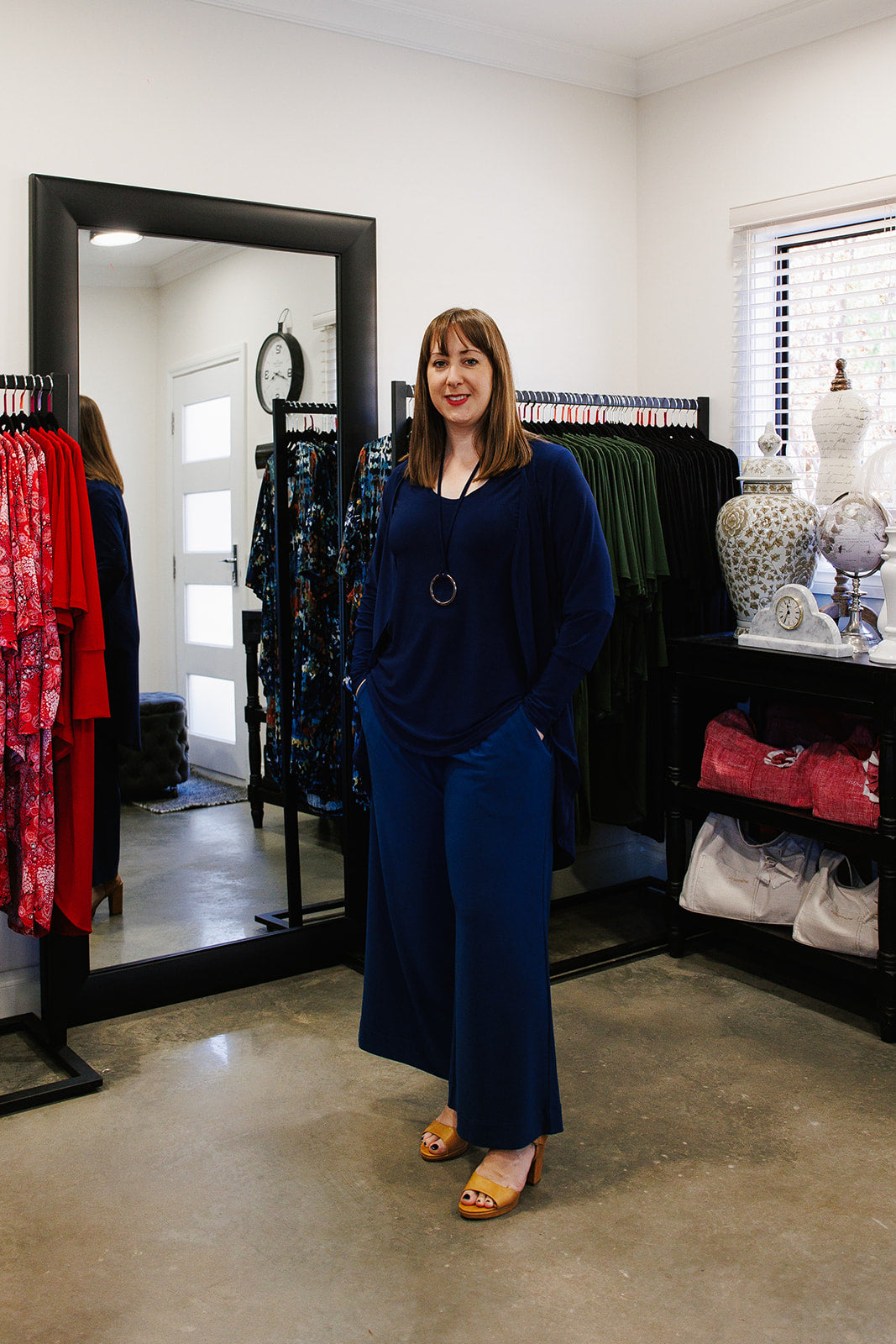 Ros is wearing Size M Fit 5 Bosom Belly Bottom Fit.