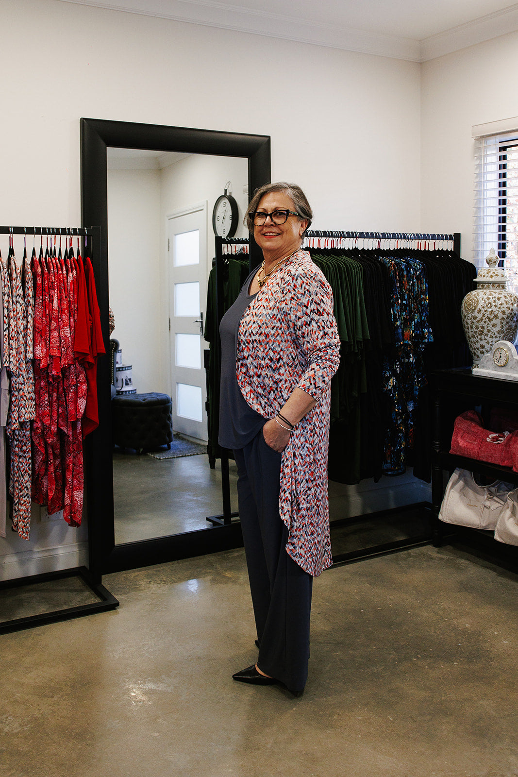 Ros is wearing Size M Fit 5 Bosom Belly Bottom Fit.