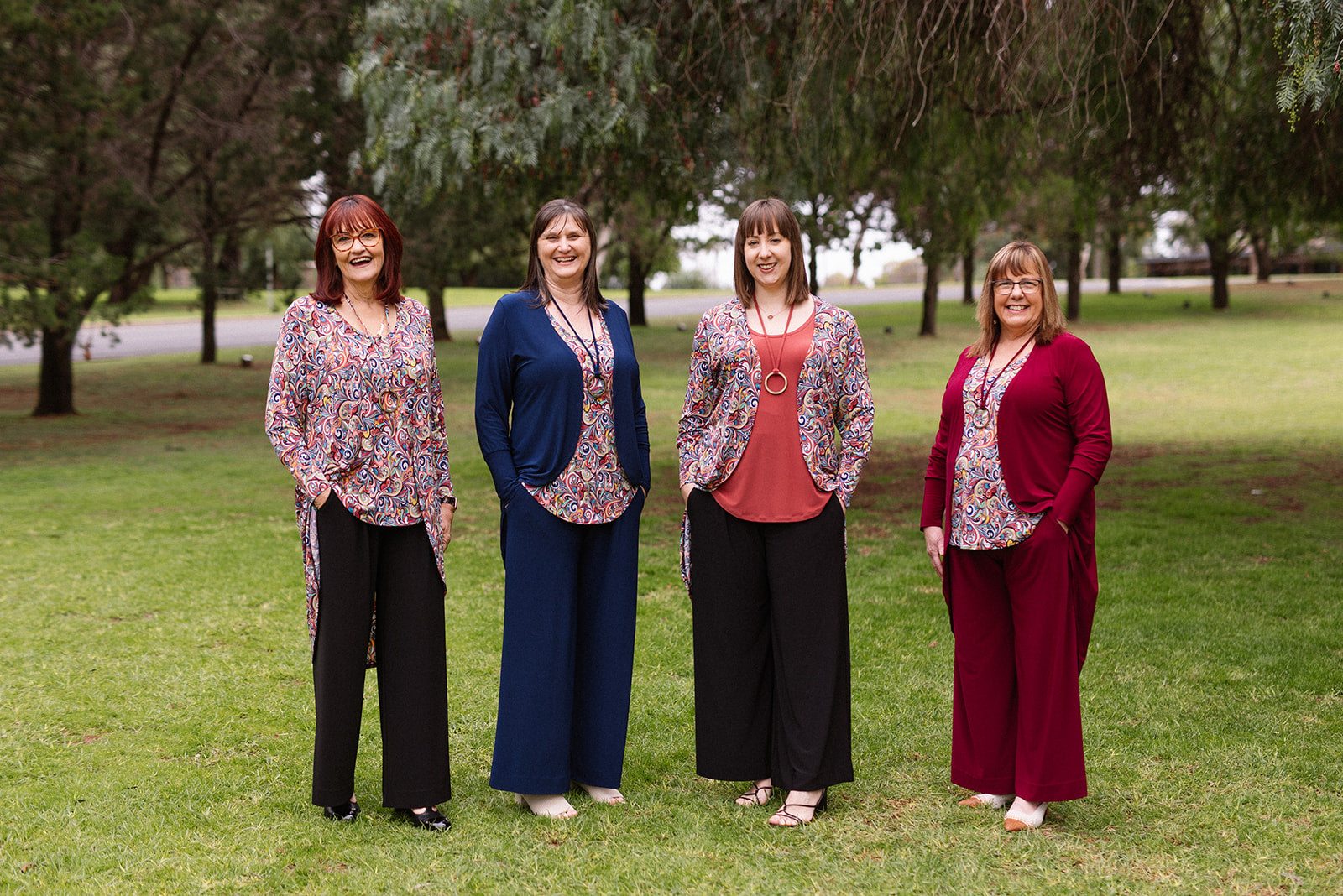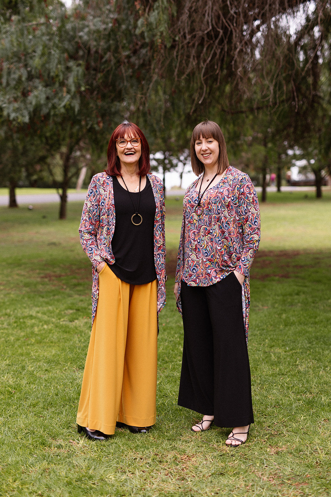 Ros and Fiona are wearing Size M Fit 5 Bosom Belly Bottom Fit.